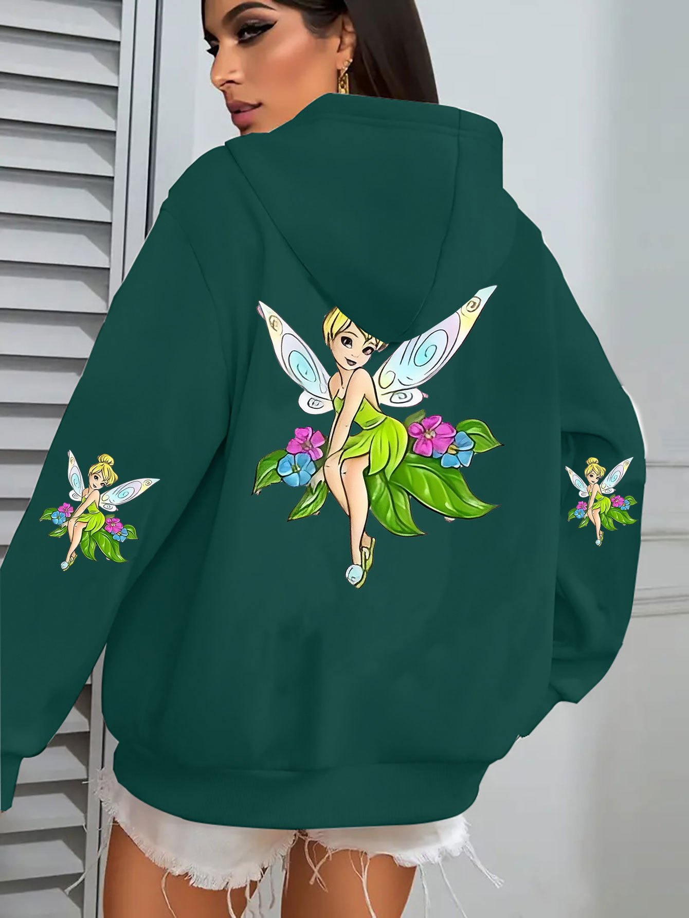 Multi-Color Disney Women's Plus Size Oversized Tinker Bell Fairy Graphic Hooded Sweatshirt - Cozy Zipper Hoodie with Full Back Cartoon Print, Soft Casual Pullover for Fall/Winter (Machine Washable, Officially Licensed)