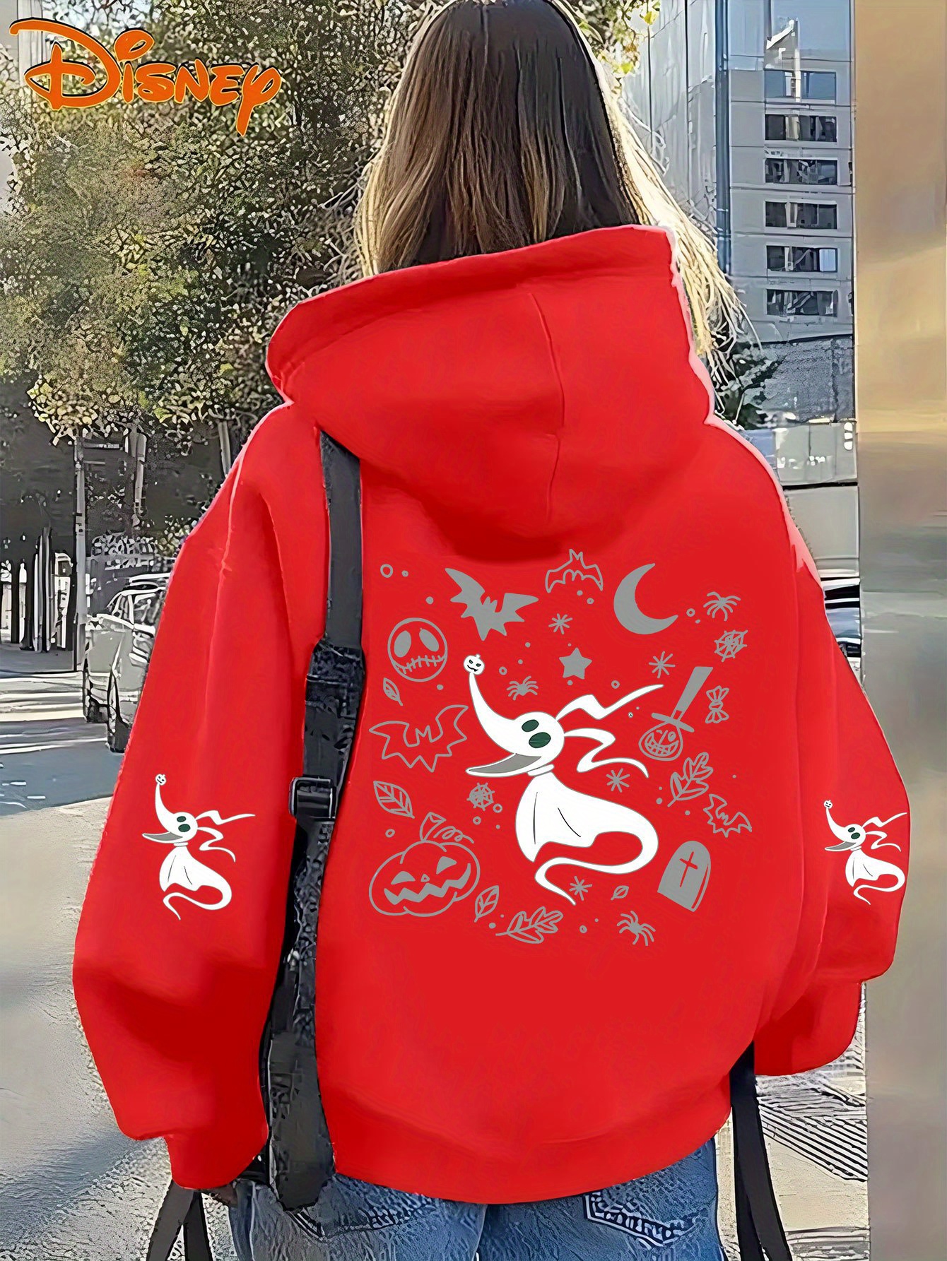 Plus Size Women'S Casual Trendy Elegant Four-Season Disney Cartoon Halloween "The Nightmare Before Christmas" Pattern Artistic Cute Daily Commute Workwear Loose Hoodie, Multi-Colored Fashionable Comfortable Sweatshirt, Autumn and Winter Outing Essential
