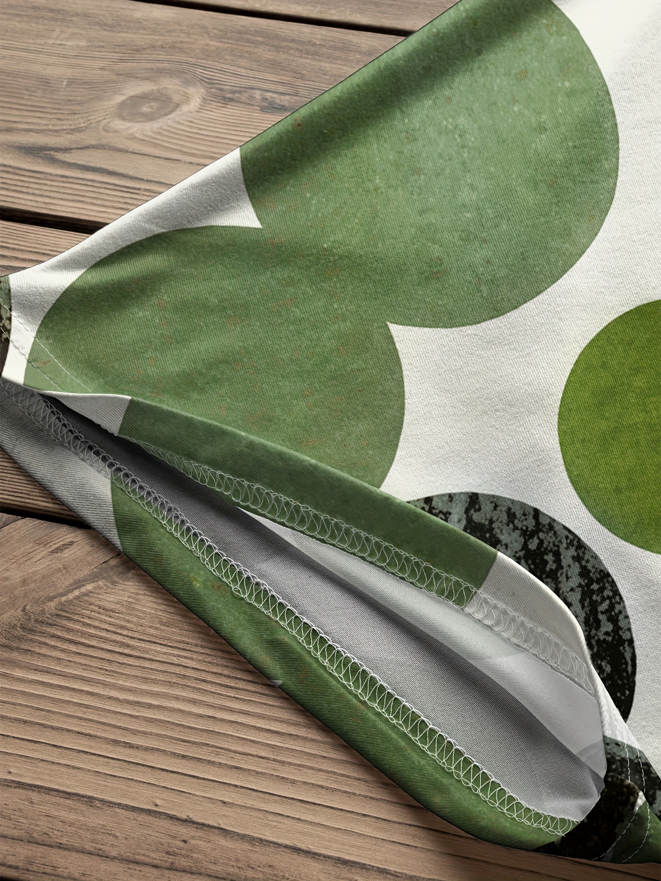 Plus Size, Women's Oversized Green & White Polka Dot T-Shirt - Casual Batwing Short Sleeves, Asymmetrical Hem & Round Neck Summer Top, Breathable All-Season Comfort Fit, Machine Washable Casual Attire (No Jewelry Needed)