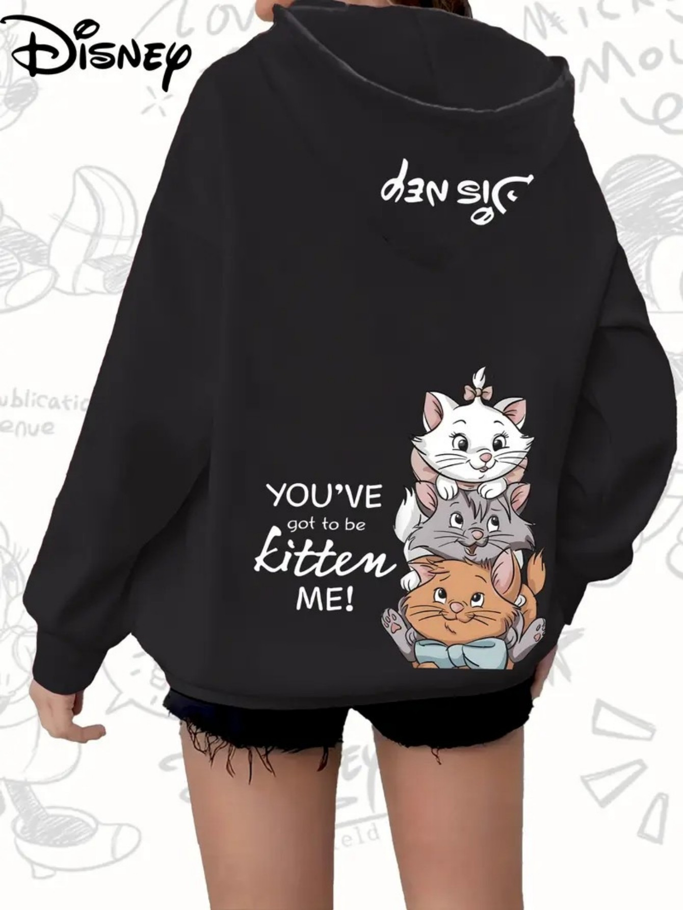 Women'S Plus Size Playtime Mary Cat & Pals Hoodie - Cozy Cartoon Print Pullover with Front Zipper, Machine Washable, Comfortable Fall/Winter Casual Sweatshirt, Oversized Hoodie