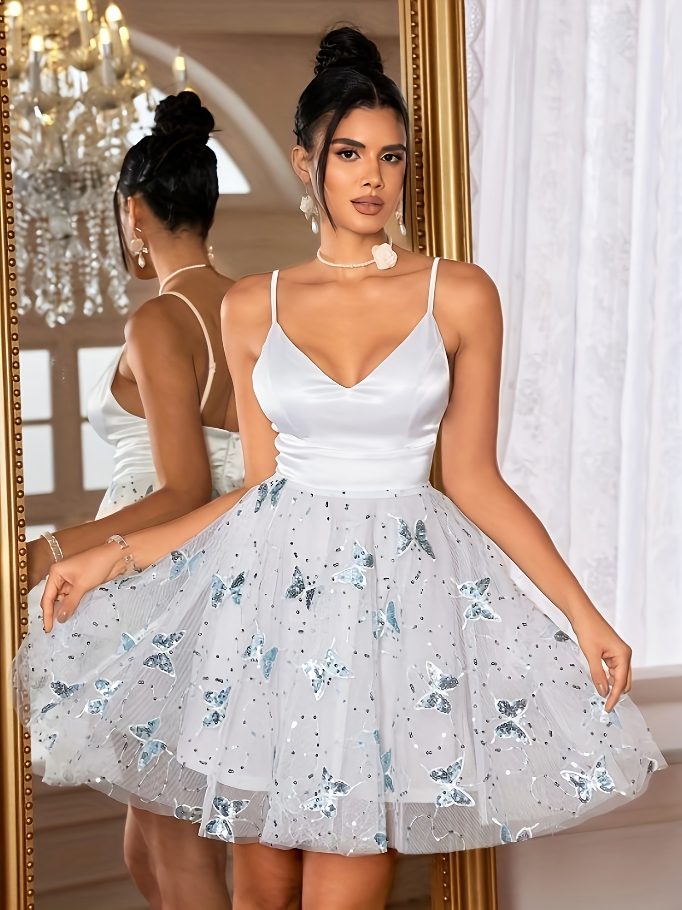 [Fashionable Dress] Butterfly Print Sleeveless Women's Dress | A-line Skirt for Parties with Thin Shoulder Straps