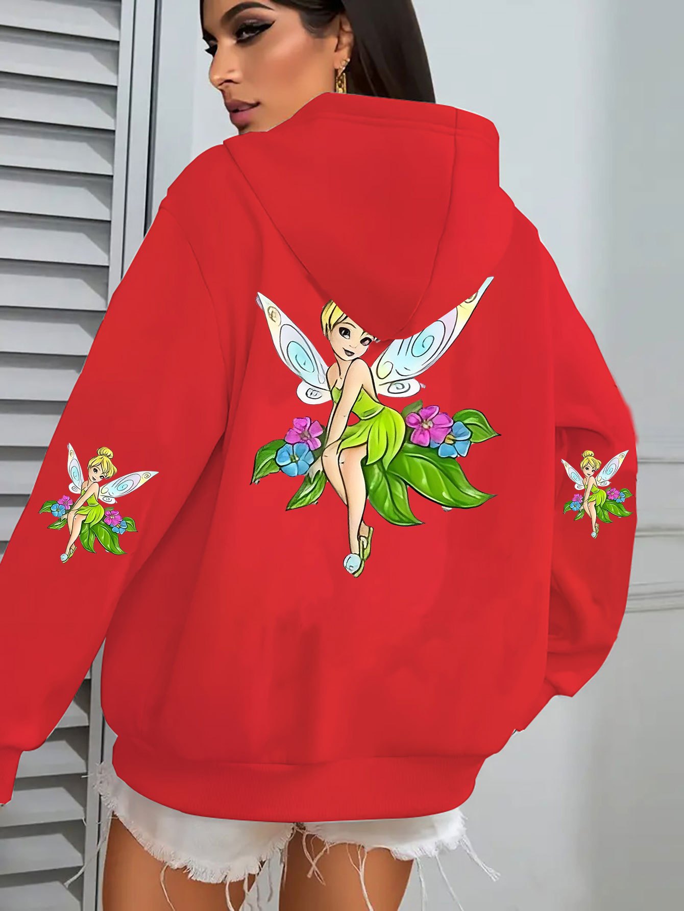 Multi-Color Disney Women's Plus Size Oversized Tinker Bell Fairy Graphic Hooded Sweatshirt - Cozy Zipper Hoodie with Full Back Cartoon Print, Soft Casual Pullover for Fall/Winter (Machine Washable, Officially Licensed)