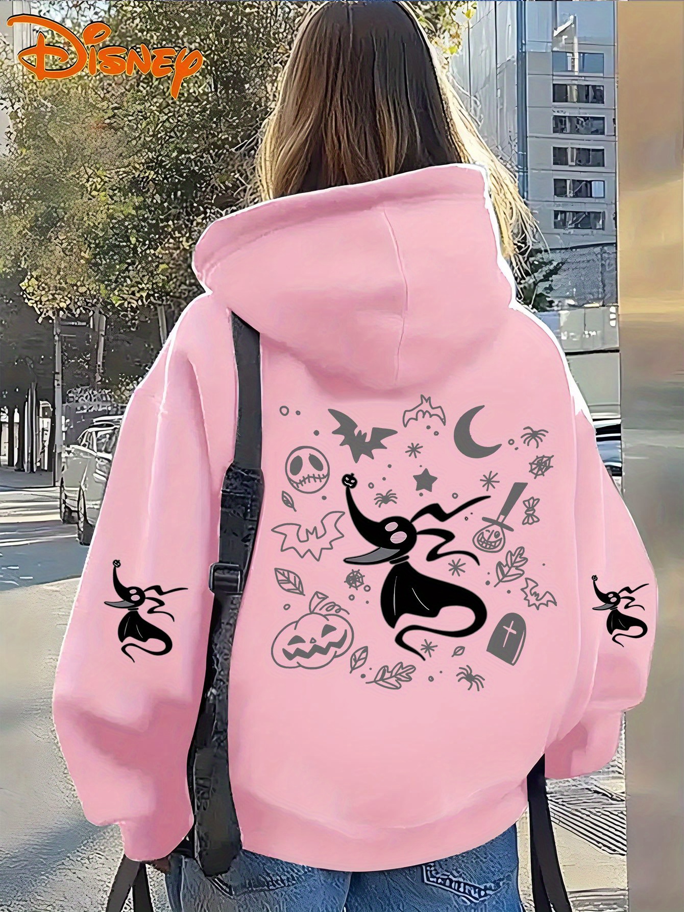 Plus Size Women'S Casual Trendy Elegant Four-Season Disney Cartoon Halloween "The Nightmare Before Christmas" Pattern Artistic Cute Daily Commute Workwear Loose Hoodie, Multi-Colored Fashionable Comfortable Sweatshirt, Autumn and Winter Outing Essential
