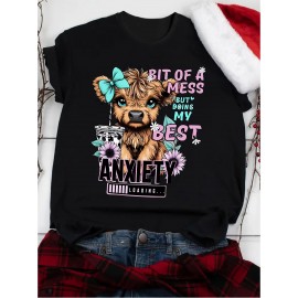 Women's Cute Cartoon Cow Print T-Shirt, Round Neck Short Sleeve Fashion Sports Tee, Comfortable Casual Top, Knitted Polyester Fabric, Romantic Style, All Seasons, Ladies Leisure Sportswear